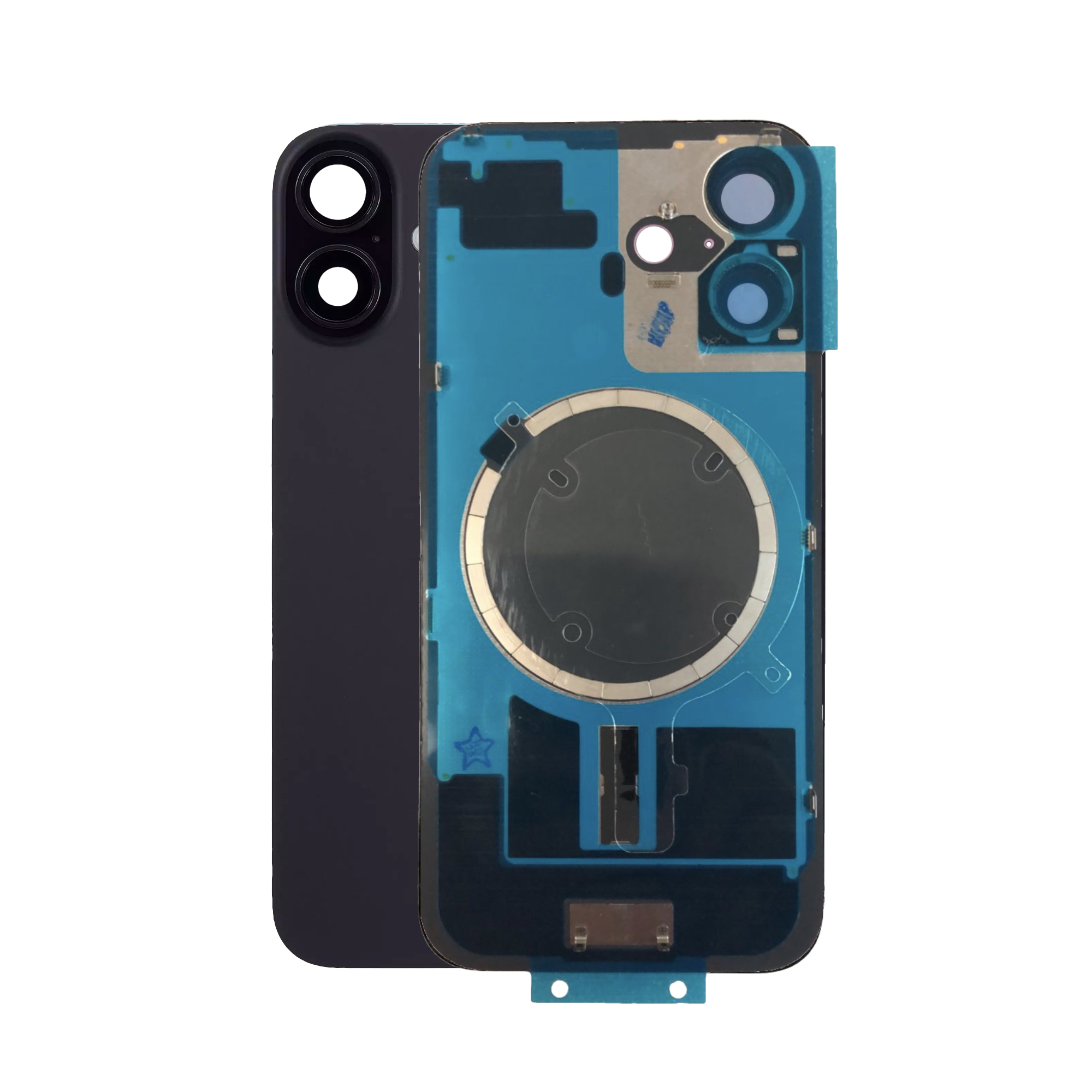 Задняя крышка (стекло) iPhone 16 (в сборе со стеклом камеры + рамка + магниты MagSafe) (Черный) (Premium)